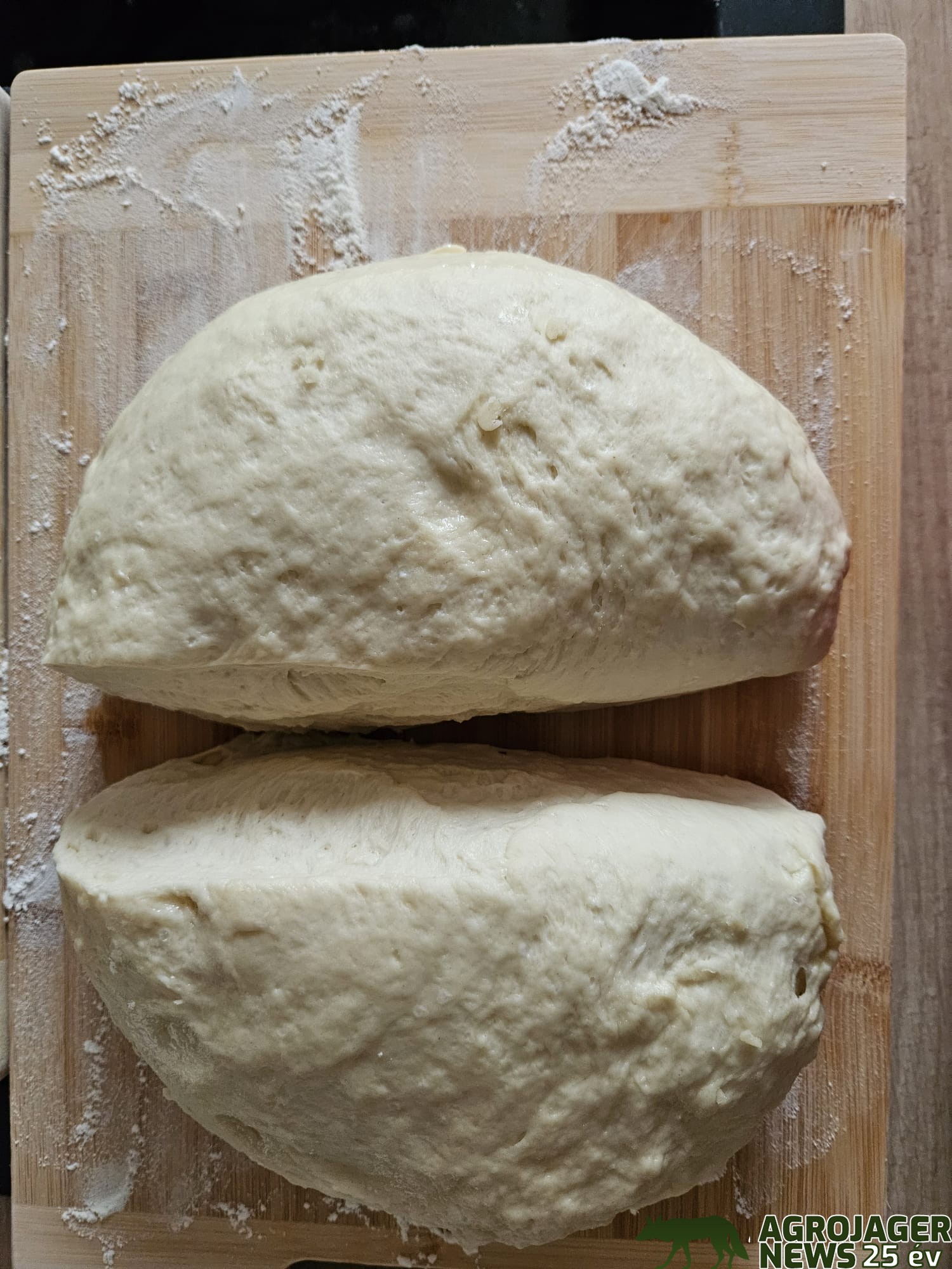 A megkelt tésztát osszuk ketté, mert ekkora mennyiség két sütésre is elég. Fotó: Agro Jager