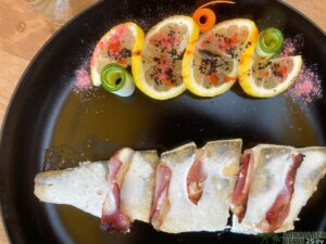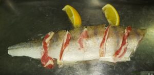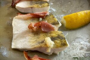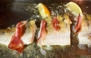A fogast sóval, kevés citrommal, fokhagymával, cseppnyi fehérborral és leheletnyi fehér borssal néhány órára bepácolom. A tepsibe vajat teszek, amelyre ráhelyezem a pácolt fogasfiléket vagy egész fogast. Nagyobb egész hal esetén javaslom a hosszában hasítást, így mindkét fele bőrrel felfelé süthető. A bőrös halat beirdalás után finom szalonnával megtűzdelem. A sütőt javaslom 180 C° hőmérsékletre állítani és előmelegíteni, a halat majdnem készre sütni.
