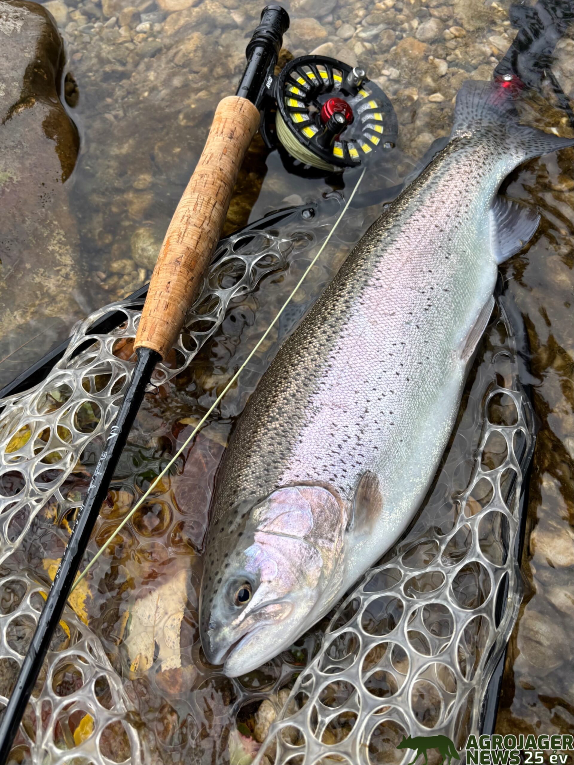 Rekordpisztrángomat egy kicsi, de annál nehezebben meghorgászható tavacskából fogtam, melynek 95%-át vízinövény borította. Száraz léggyel sikerült becsapnom ezt az igazán pompás élőlényt, amely csaknem 60 cm volt teljes hosszban. Elképesztő élmény volt a mögöttem látható, hínárral tarkított vidékről kivarázsolni.