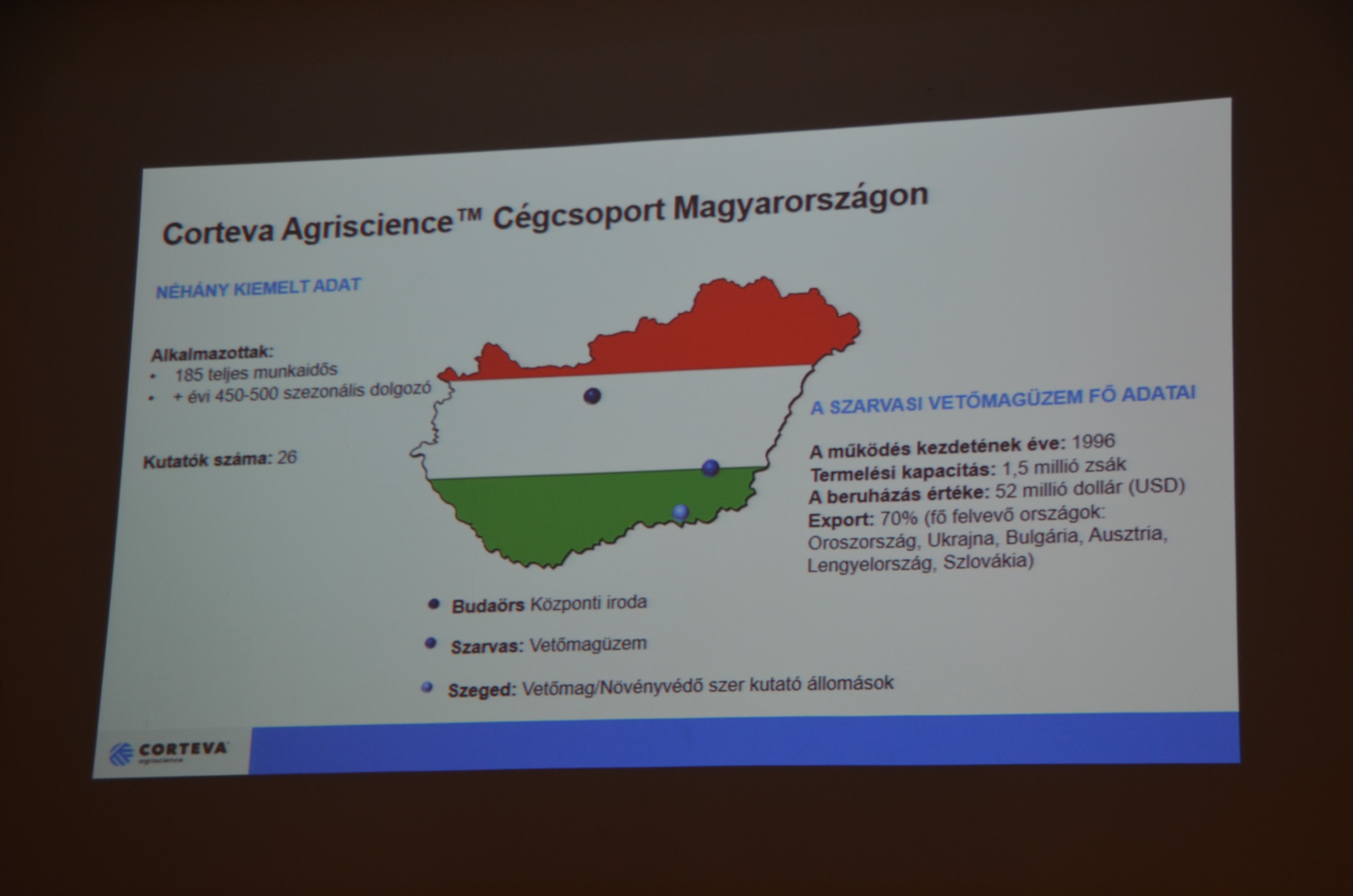 A hivatalos kamarai hirdetmények és ügyintézéseket követően Rácz Attila, a Corteva amerikai vetőmag és növényvédő szer multinacionális vállalat értékesítője hozott értékes vetőmagokat, ajánlatokat. Ami valójában érdekelte a szakmát, az a gyomirtási lehetőségek megoldásai, míg gyümölcs és kertészeti kultúrákban a növényvédelmi fejlemények kötötték le a jelenlevők figyelmét leginkább – hiszen a profit meghatározó része mégis csak ezeken áll, vagy bukik.