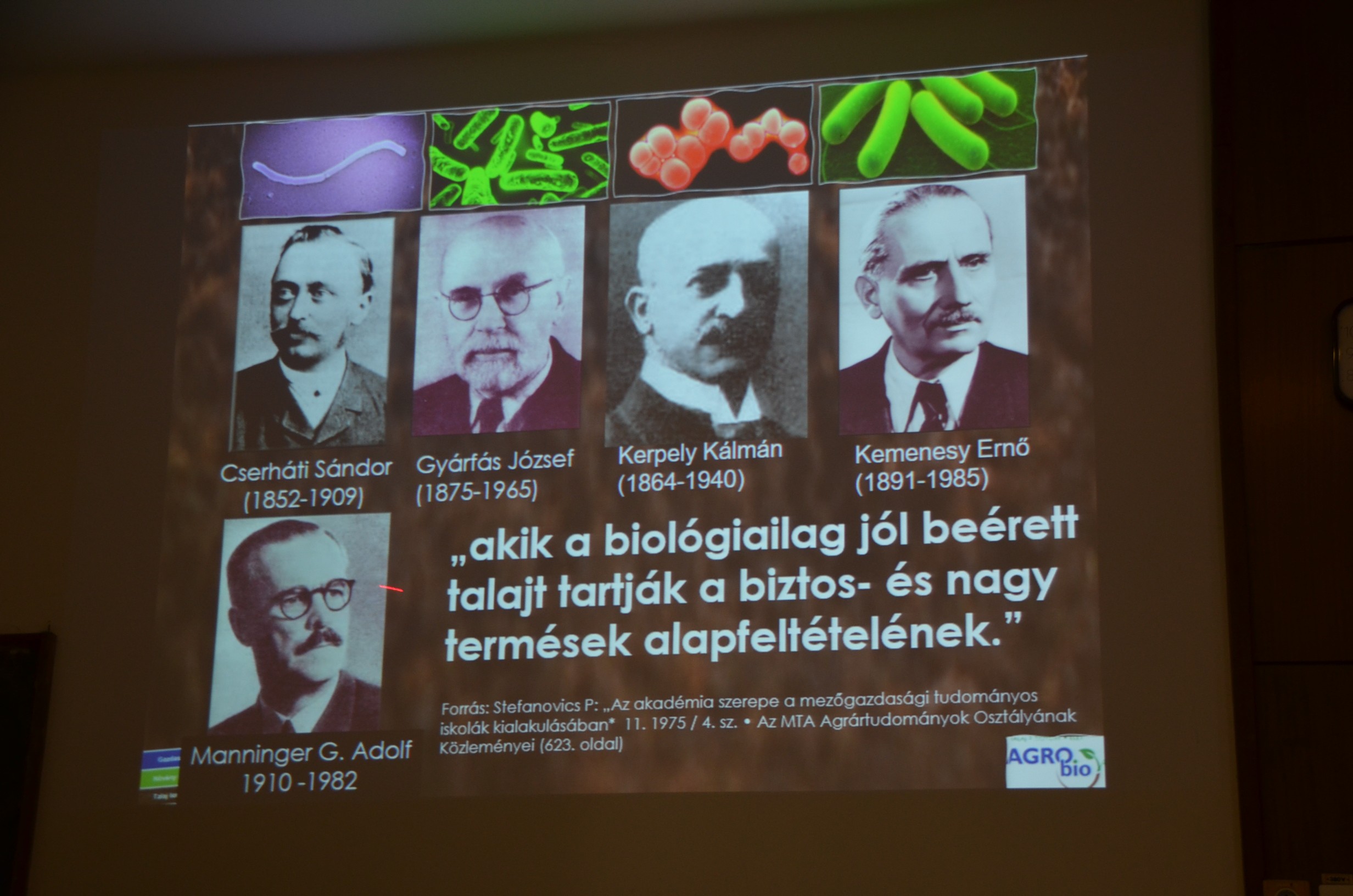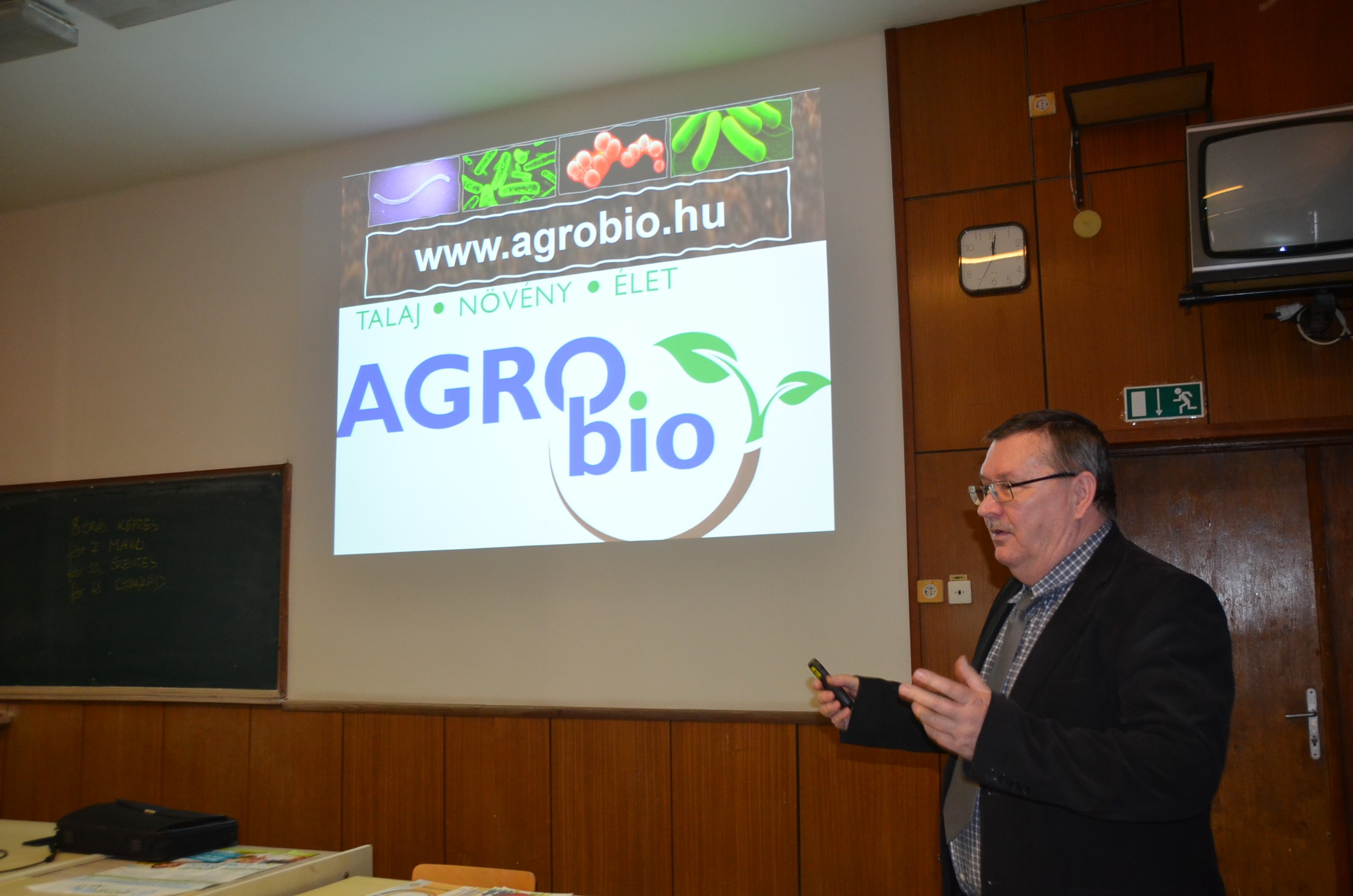 Tatay Kálmán, a magyar alapítású és magyar tulajdonban lévő Agrobio termékcsalád Csongrád és Békés megyei képviselője kiemelte, hogy nagyon sok magyar kutató foglalkozott korábban a talajjal, amellyel manapság kezdünk újra megismerkedni. Üdvözölte a hírt, hogy ma már olyan képzést is meg lehet találni, mint a Biológiai talajerő-gazdálkodási szakirányú továbbképzési szak. Hangsúlyozta, hogy a termékek pontos, precíz előírásnak megfelelő felhasználása mellett várhatunk sikert. Együttműködések révén már megállapították, hogy a KITEStart nitrogén és foszfor műtrágyákkal biztonsággal keverhetők és kijuttathatók a Bactofil készítmények. A Bactofilt alapvetően az AKG programban gazdálkodóknak ajánlják. Méréseikre első sorban a Debreceni Egyetem kísérleti bázisának eredményeire támaszkodnak, ahol képesek a szakemberek parametizálni egy-egy új vegyszer, műtrágya és más készítmények teljesítményét. A két növényre állt vetésforgóval dolgozó gazdák számára különösen fontos, hogy a szármaradványok gyorsan le tudjanak bomlani, ehhez persze megfelelő agrotechnikát kell illeszteni és a gombakészítményekkel kombinálva képesek lehetünk felgyorsítani a talajainkban a biológiai folyamatokat.