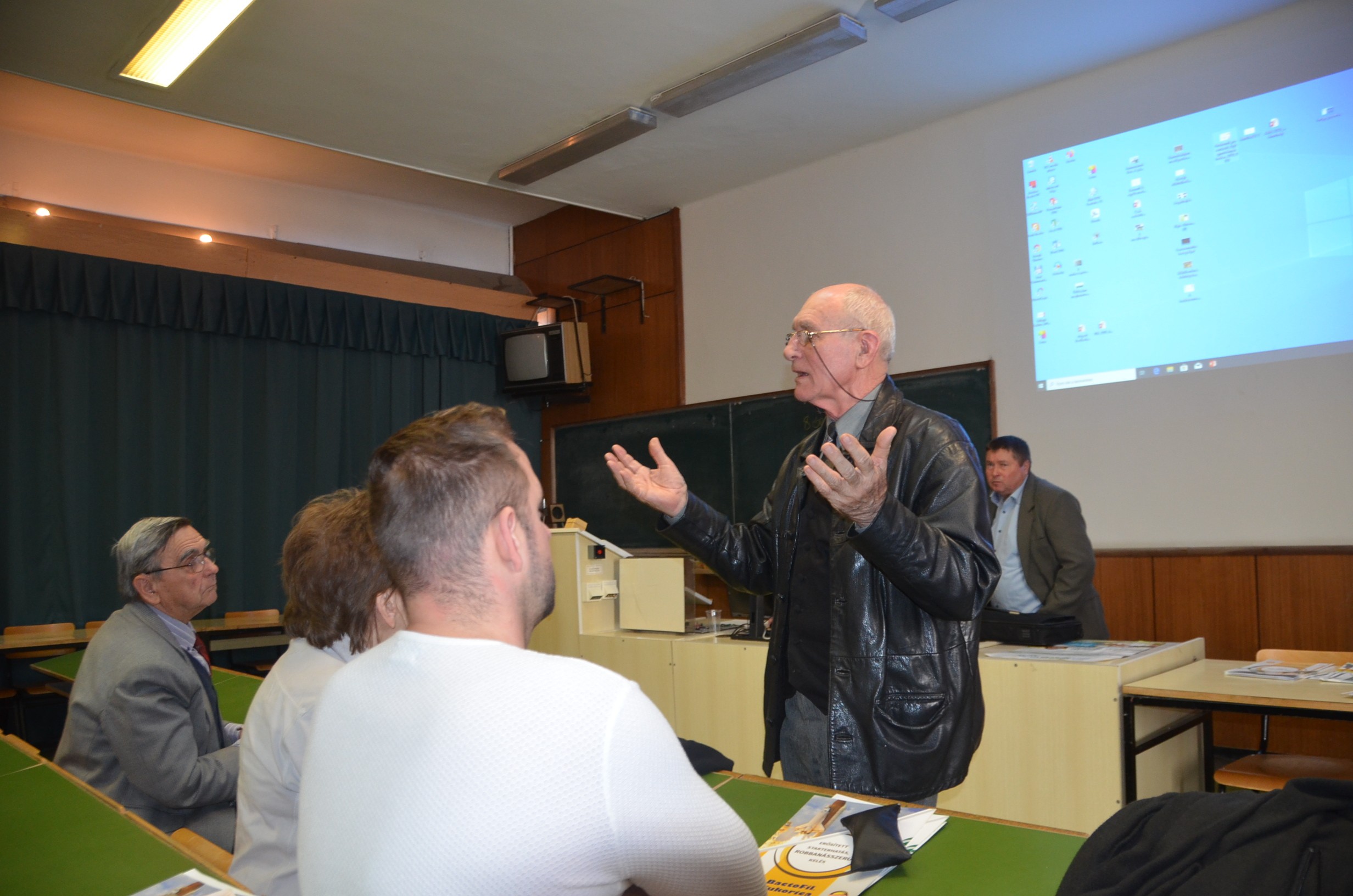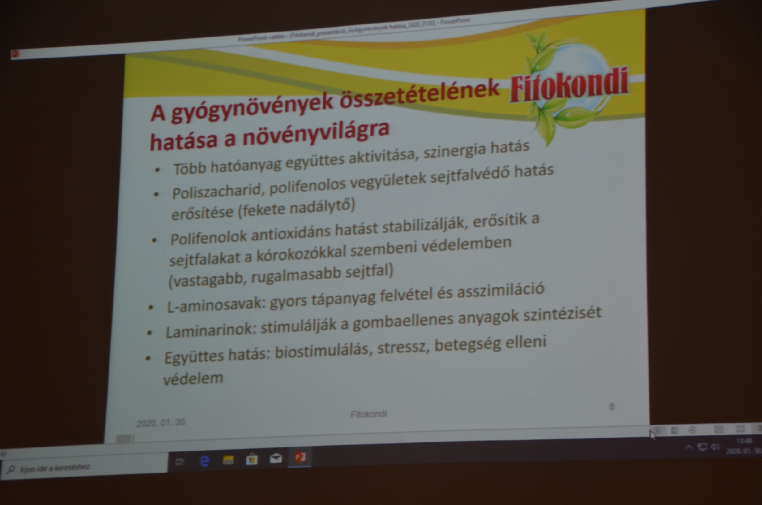 Külön színfoltja volt az előadásnak a Volánpack Zrt. Fitokondi termékcsaládja, amelyeket a cég magyar tulajdonosa gyógynövények kivonataira alapoz. A lehetőségekről Dull Csaba számolt be. A Fitokondi nem csak nagyüzemi, hanem a kiskertek tarka, egymáshoz közeli kultúrái növényvédelmi problémáinak a megoldását is kínálja. Csalán, zsurló, fehérüröm, vérehulló fecskefű, fűzfakéreg és más gyógynövények kivonataiból, makro és mikroelemekből áll. Ami, valljuk be, jó alternatíva nekünk is, amikor jó barátaink a kiskertekbe, lakásba, balkonra keresnek olyan készítményeket, amelyek segíthetnek is és a szomszédokat sem zavarja.