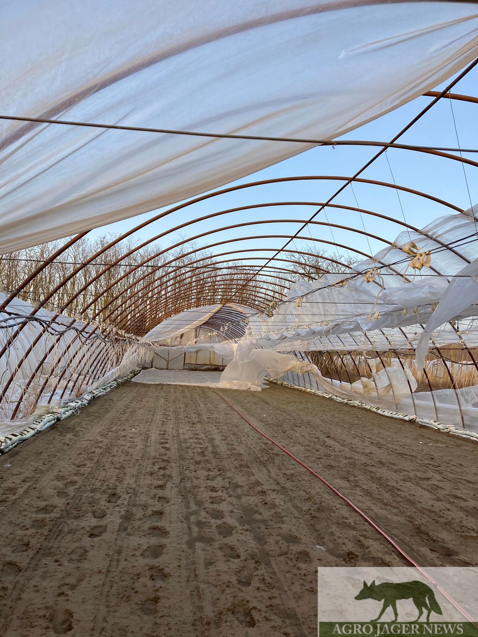 A szélvihar után azonnal pótolni kellett a sérült fóliasátrakat a fagy miatt. (Kép: Zana Viktor – Agro Jager News)