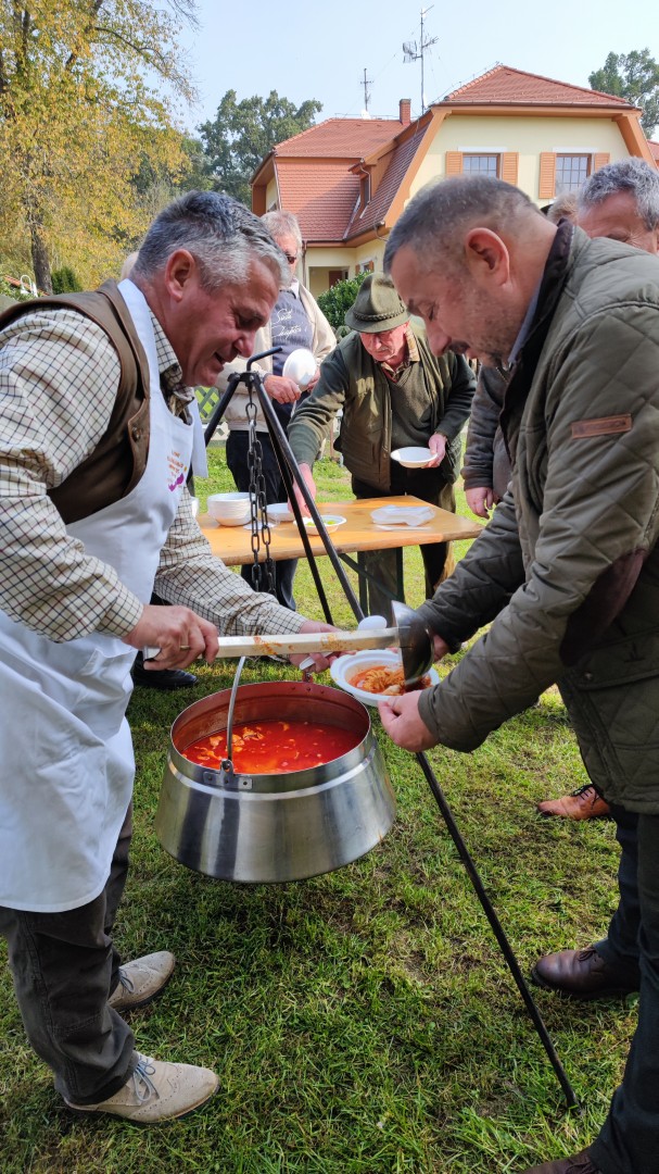 A 10. Vas Megyei Trófeaszemle résztvevőit a szervezők szarvaspörkölttel, valamint a Balatoni Halgazdasági Zrt. vezérigazgatója, Szári Zsolt és munkatársai halászlével vendégelték meg.