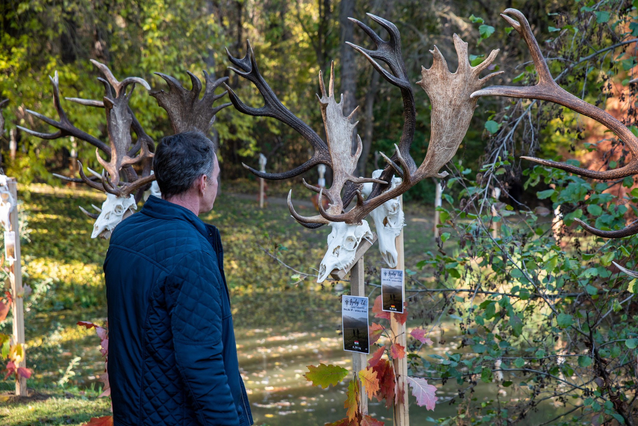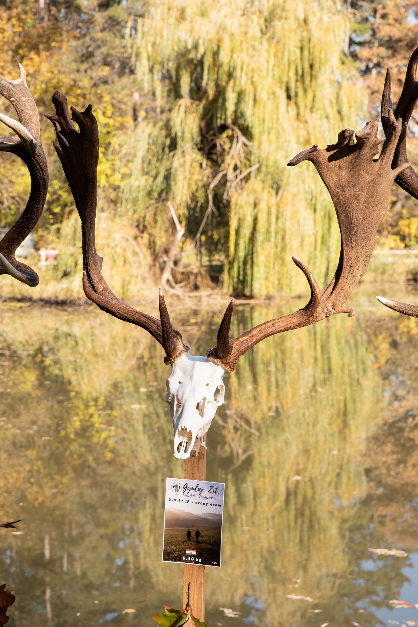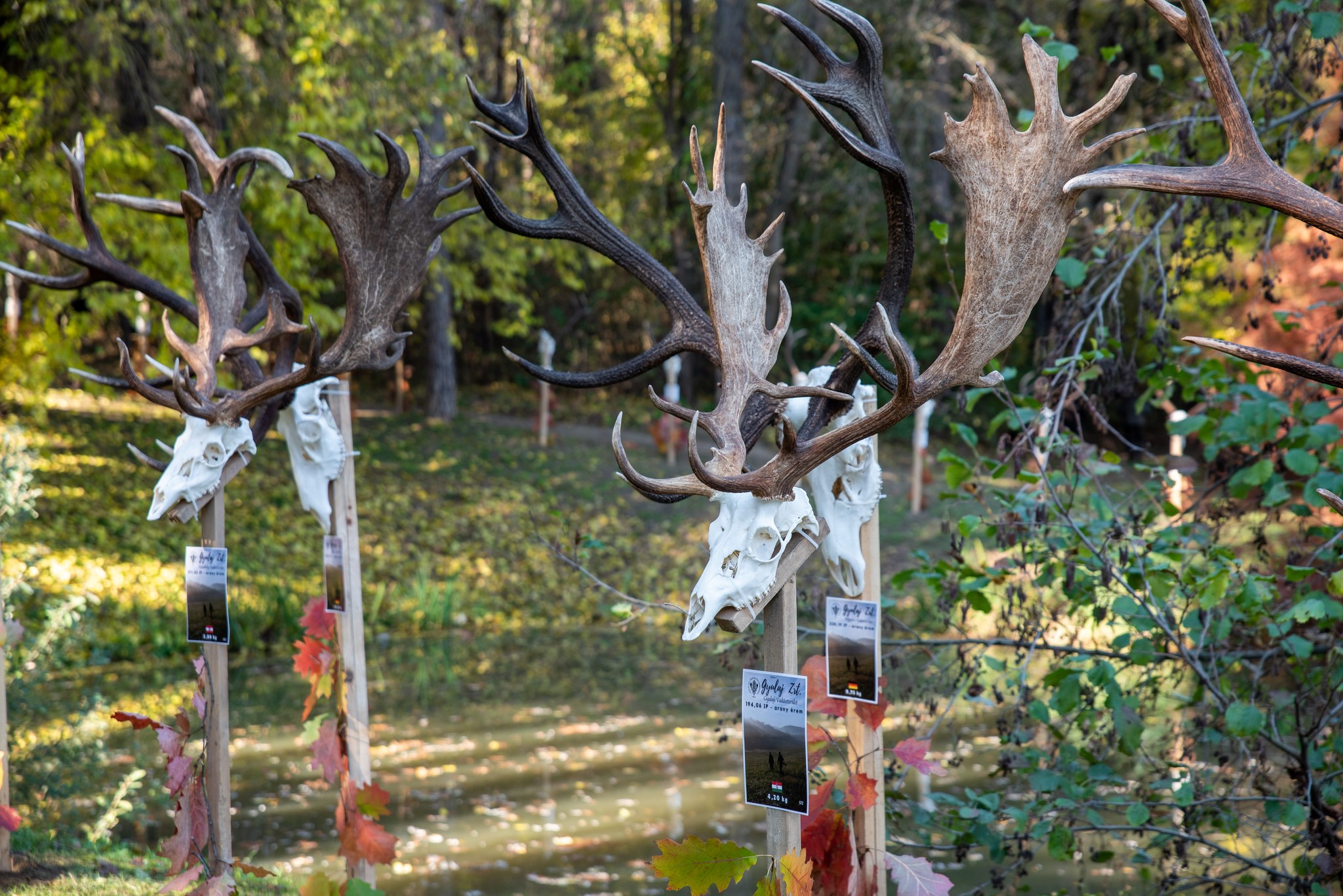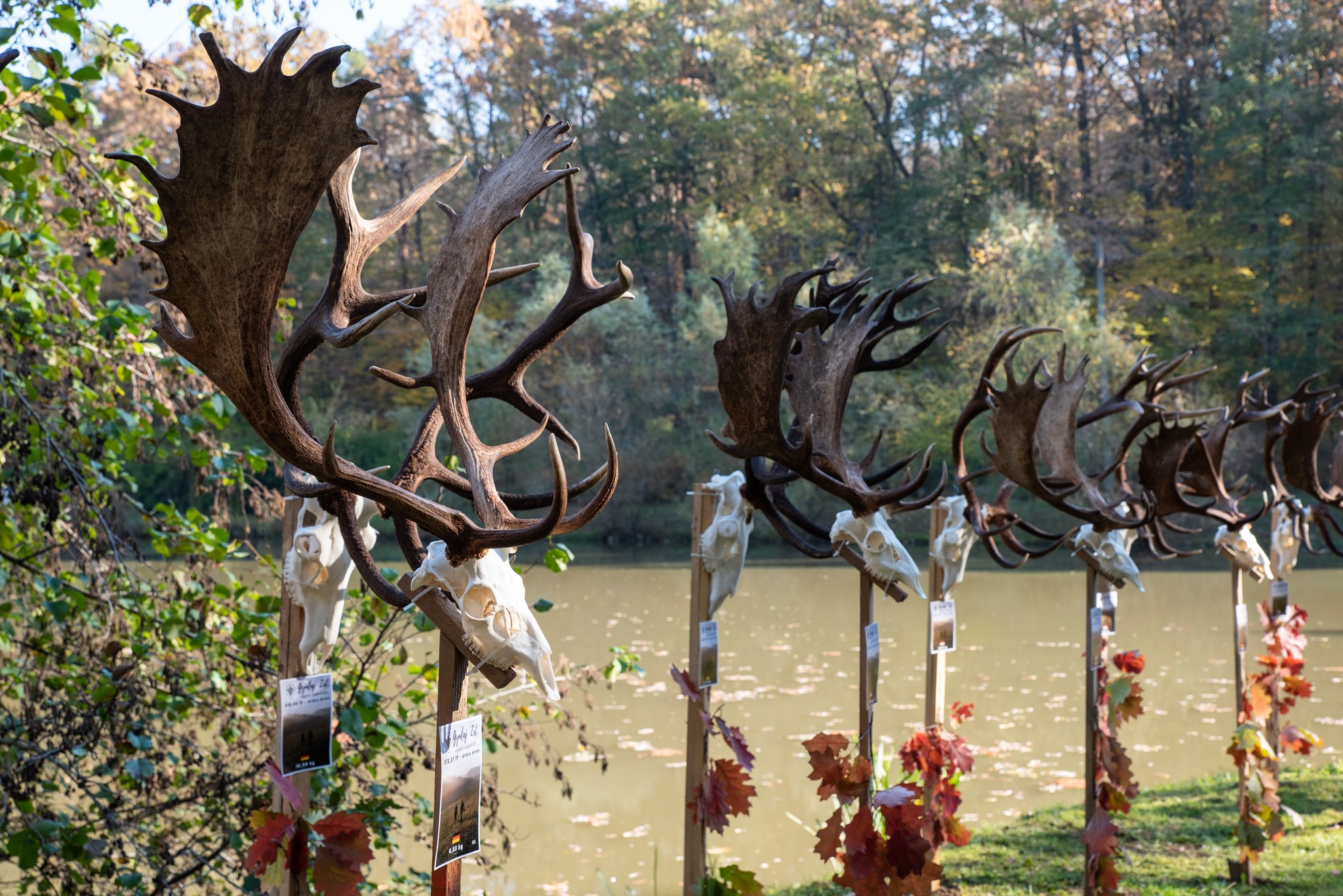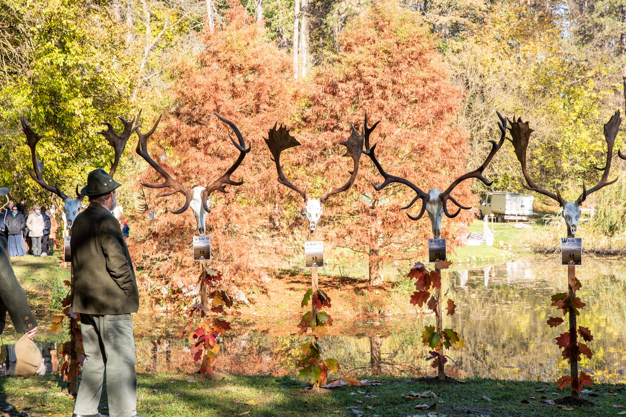 A Vadászkamara Kürtegyüttese gyönyörű szólamaival kezdődött a trófeaszemle a tó és az erdő semmivel fel nem érő kiváló akusztikájában, mindez a természet őszi pazar lombszíneződése mellett.