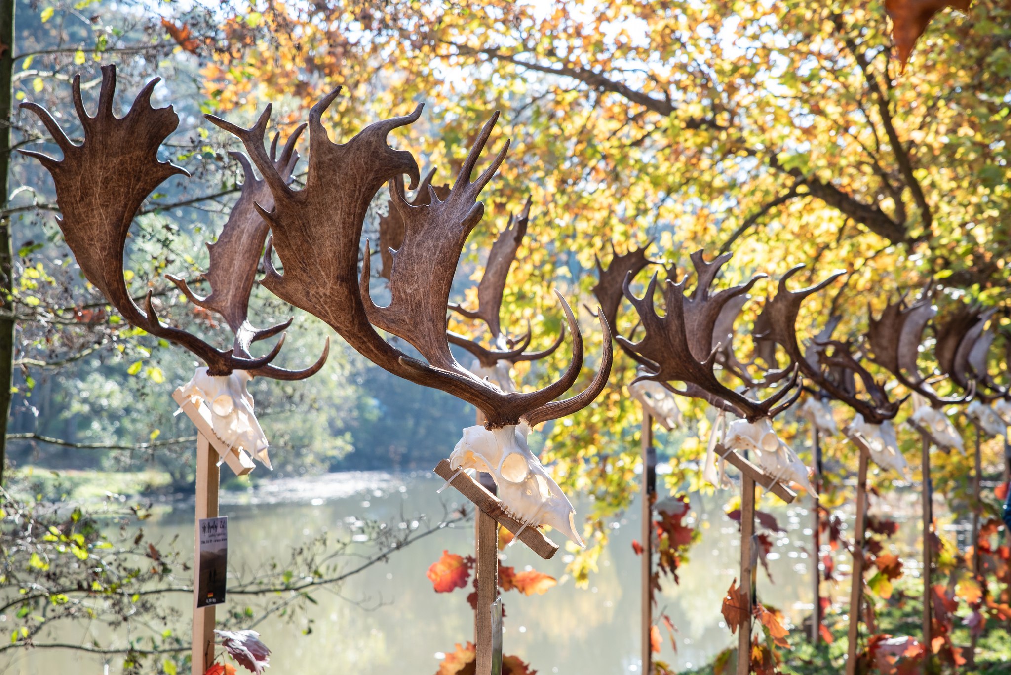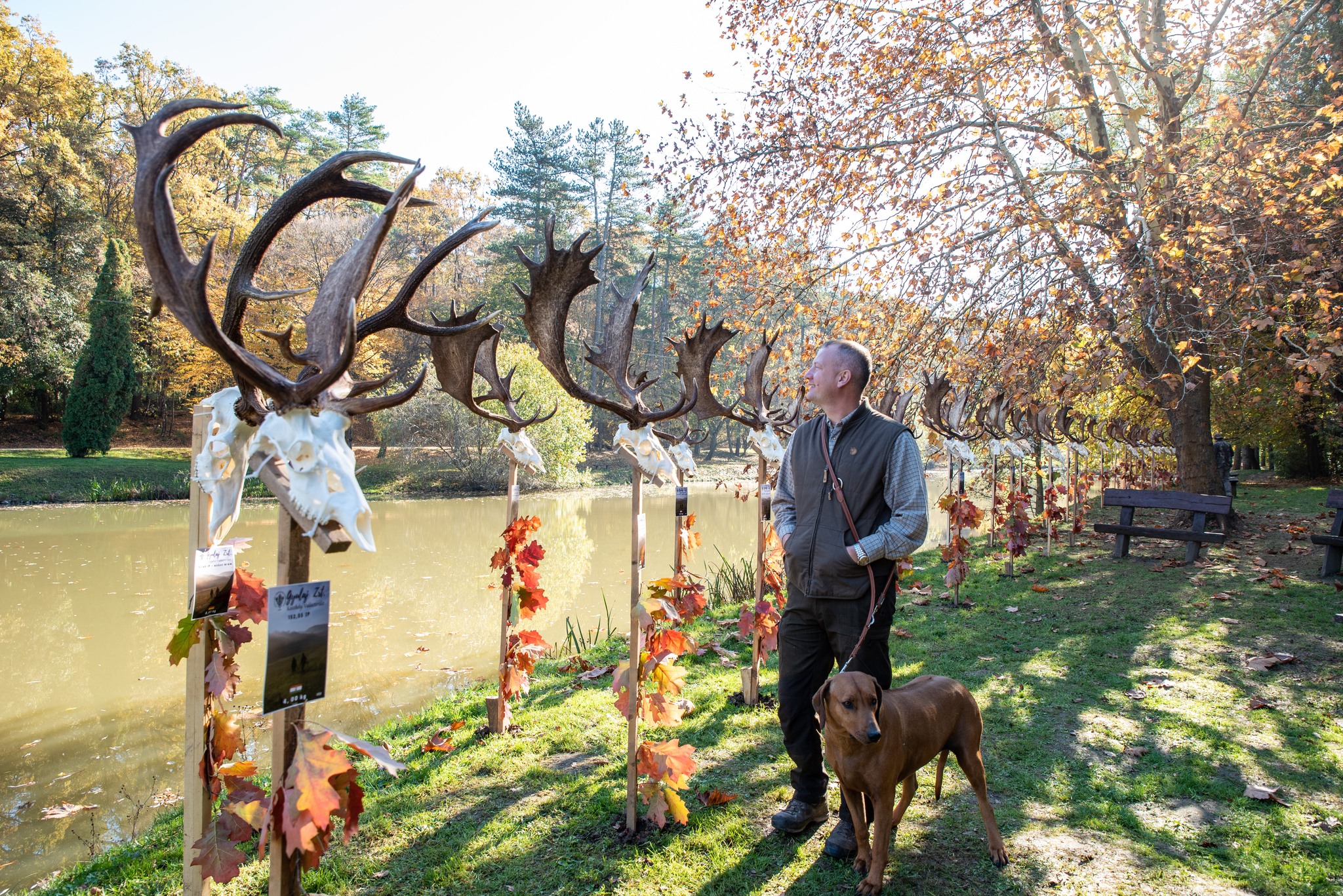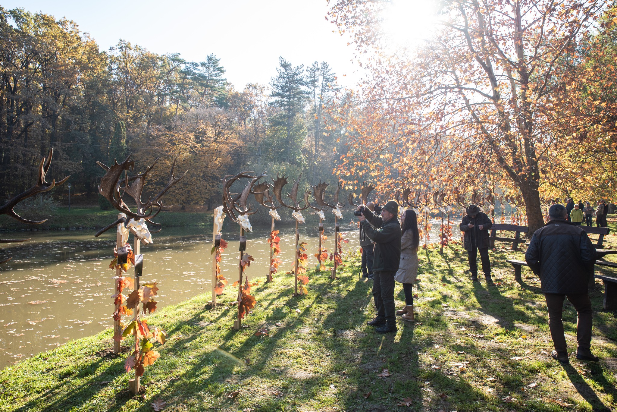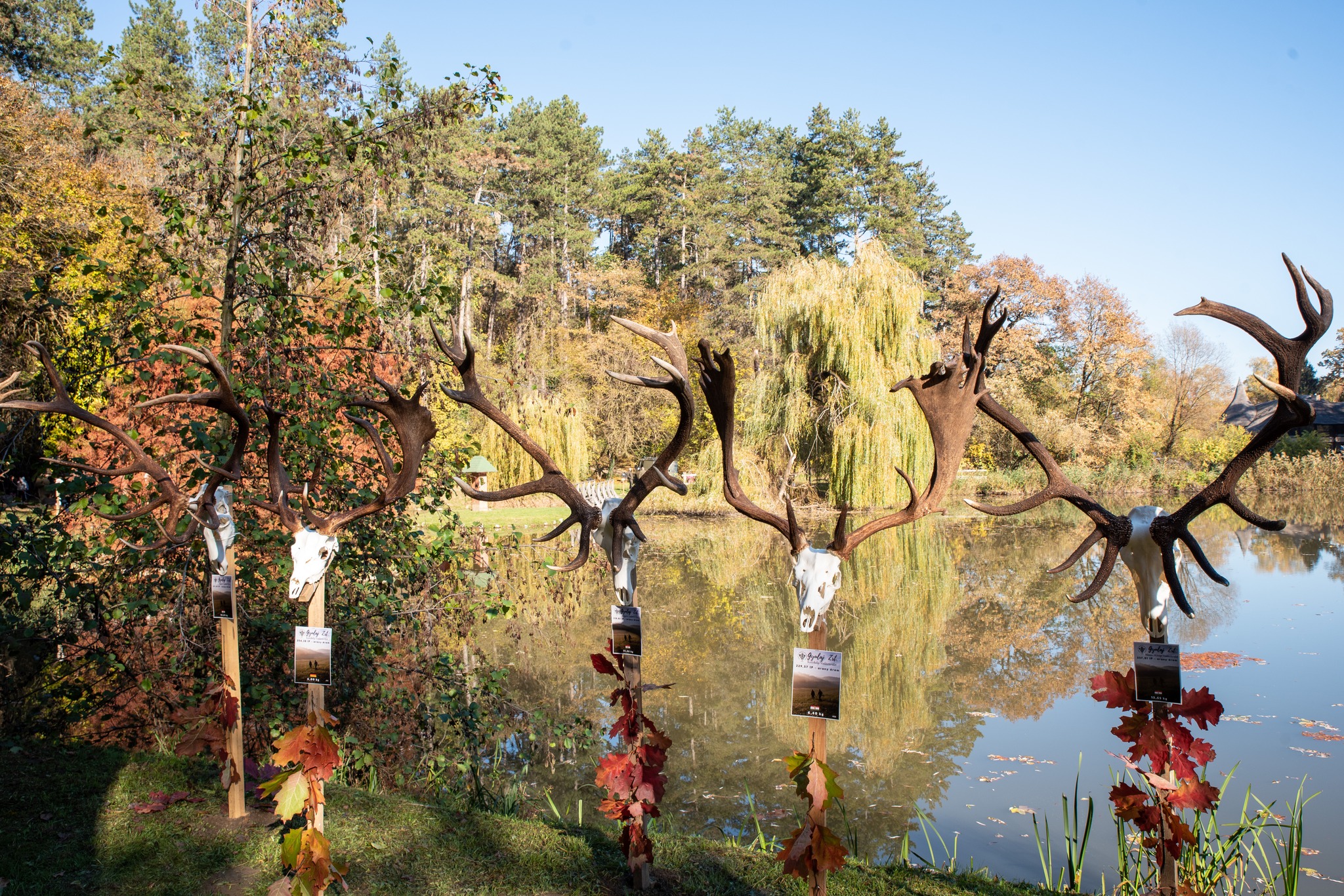 A Vadászkamara Kürtegyüttese gyönyörű szólamaival kezdődött a trófeaszemle a tó és az erdő semmivel fel nem érő kiváló akusztikájában, mindez a természet őszi pazar lombszíneződése mellett.