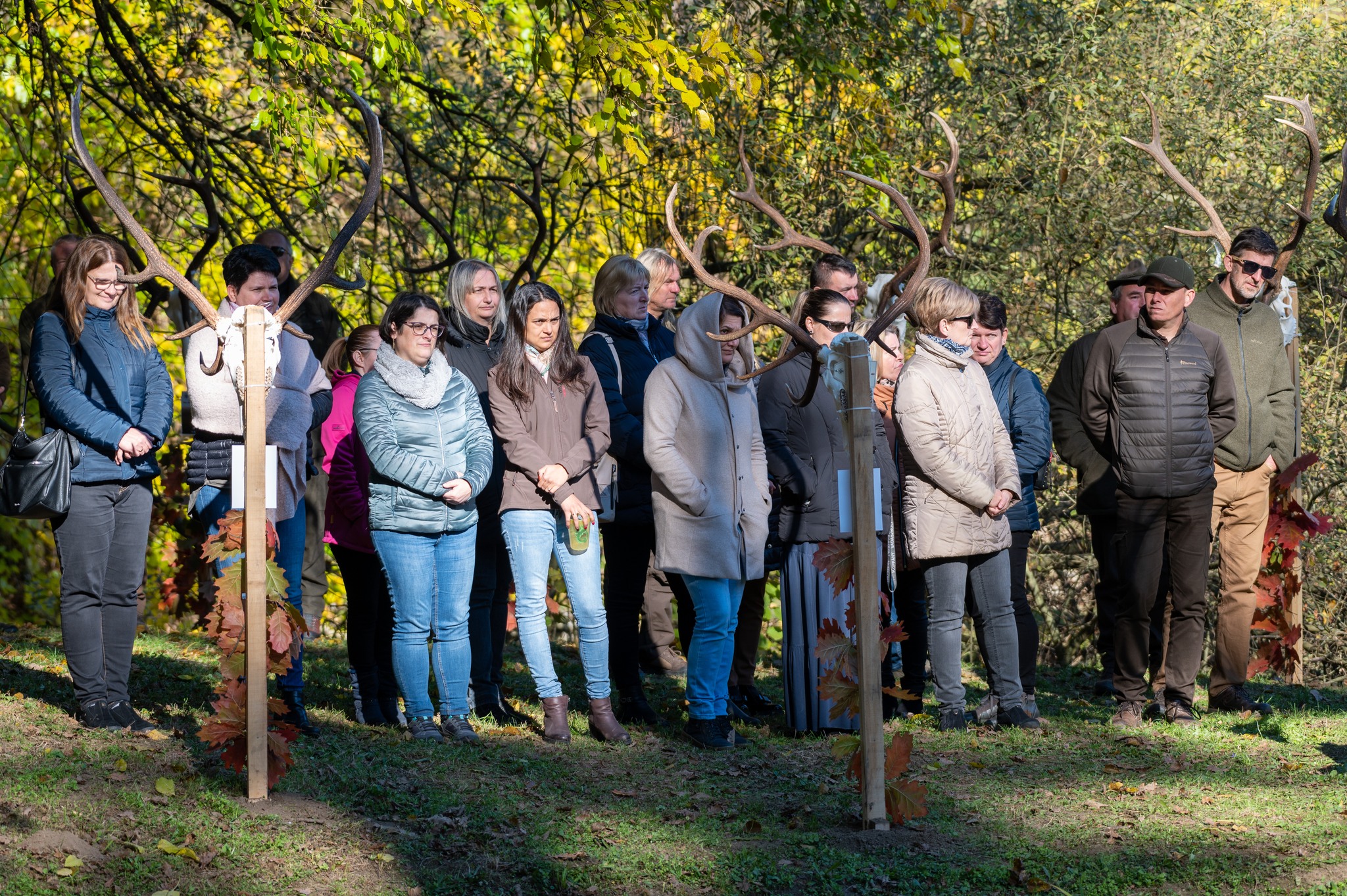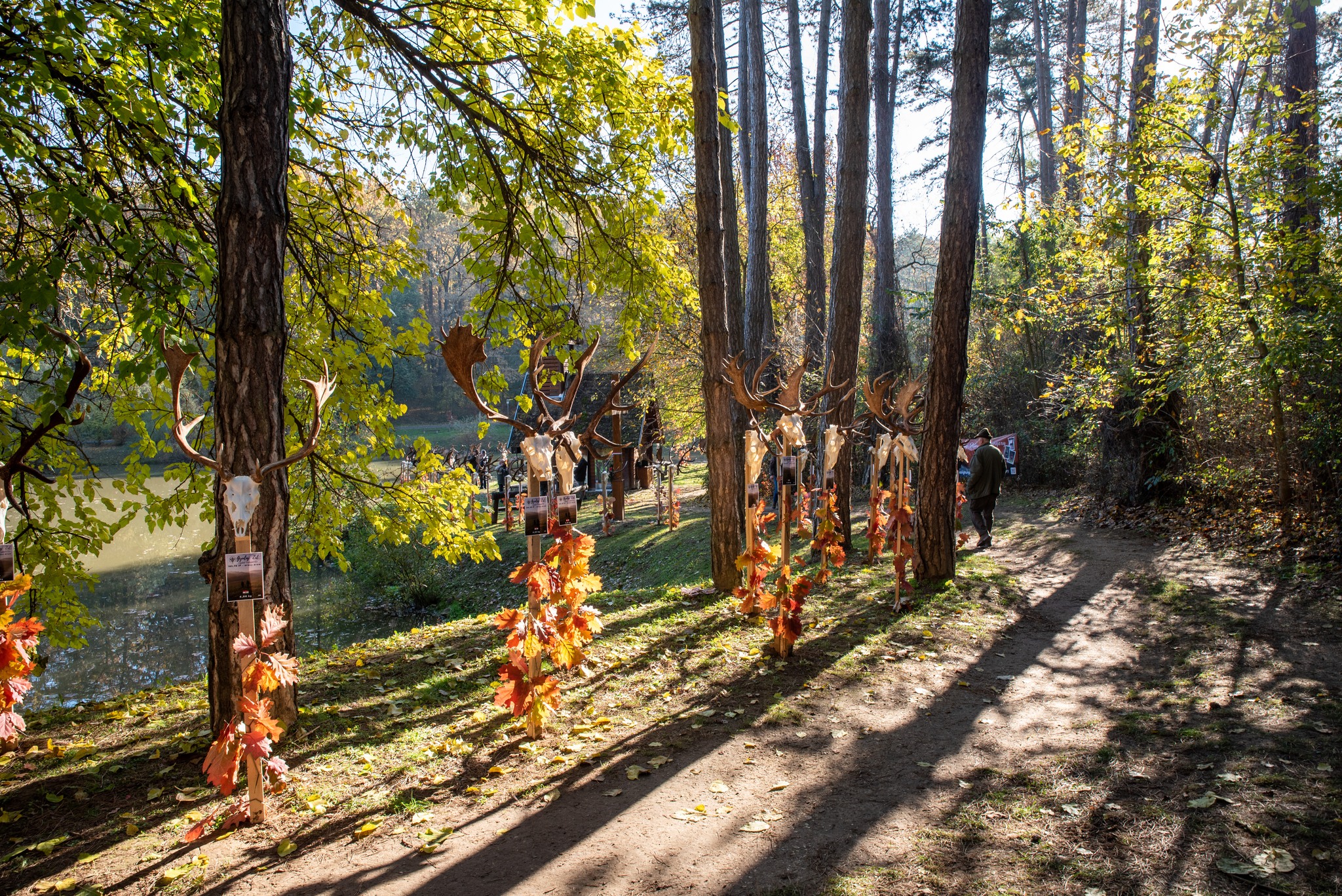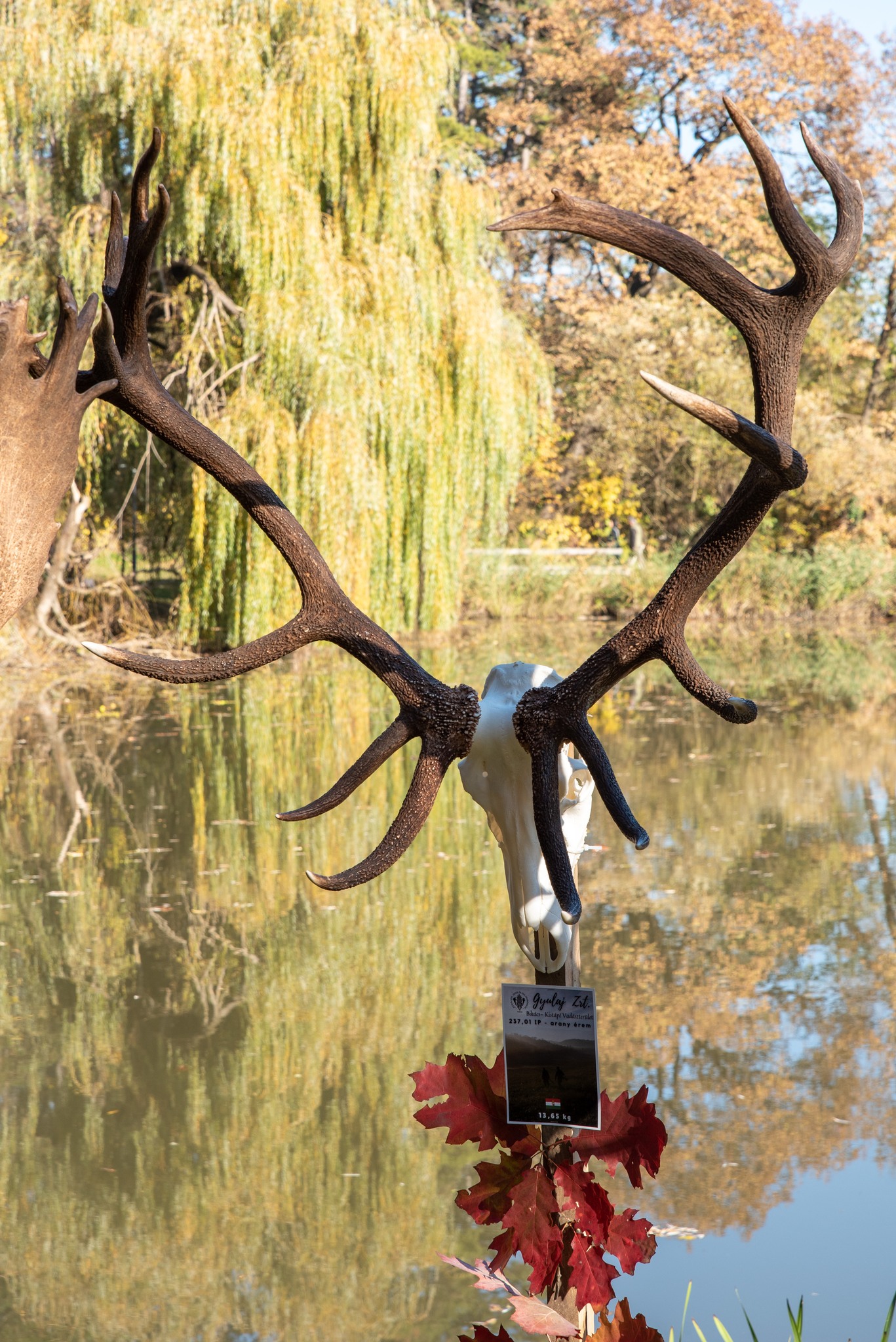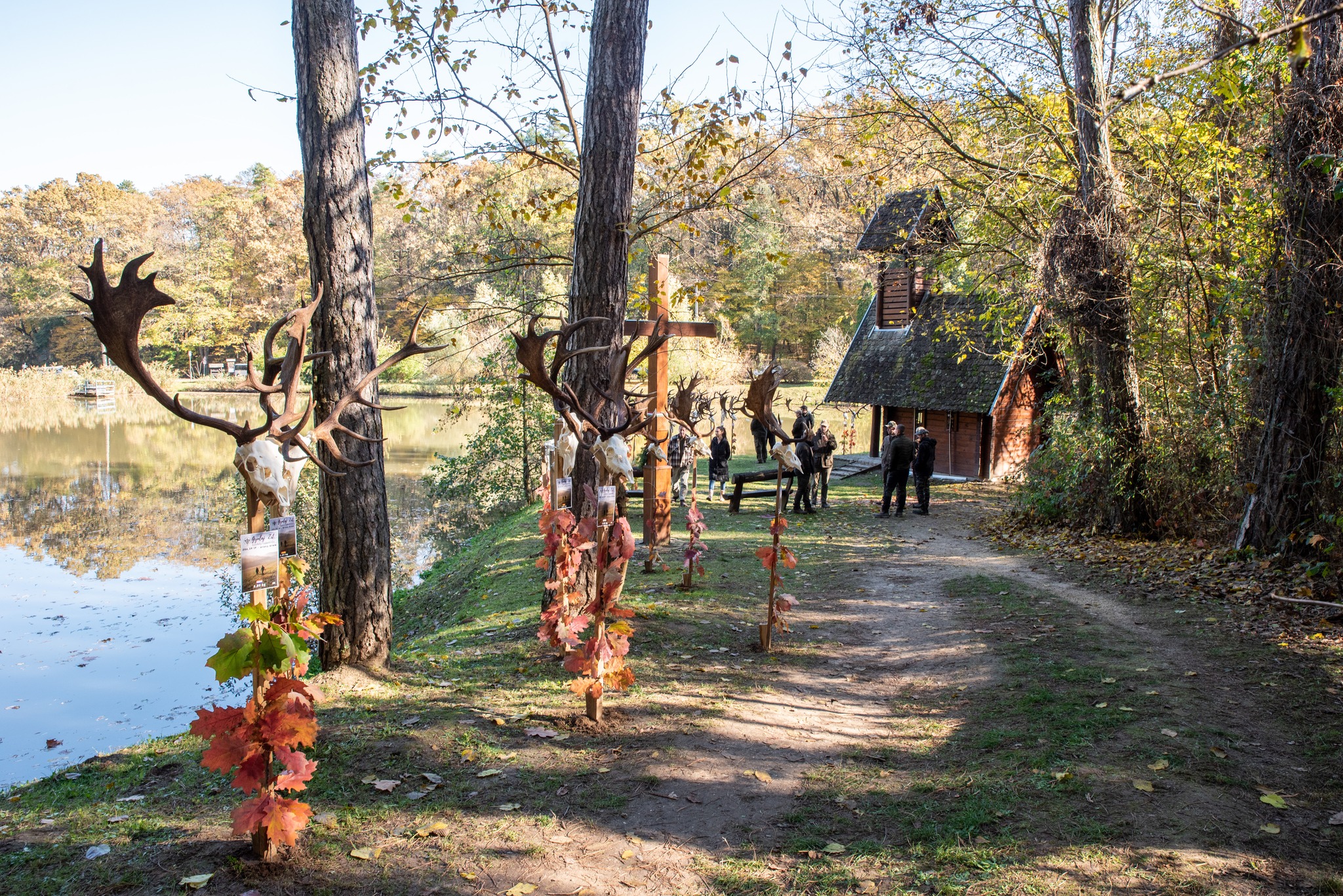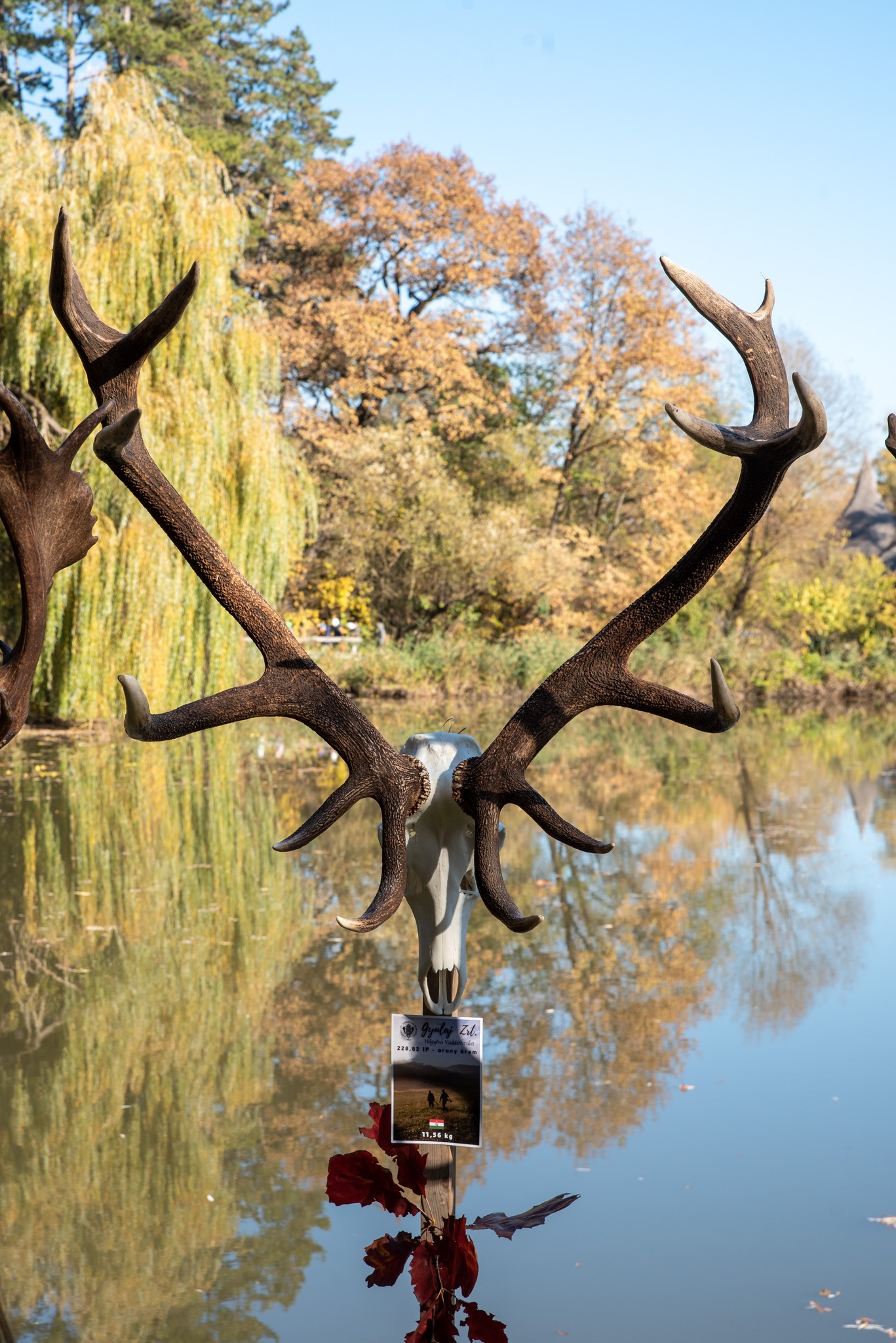 A Vadászkamara Kürtegyüttese gyönyörű szólamaival kezdődött a trófeaszemle a tó és az erdő semmivel fel nem érő kiváló akusztikájában, mindez a természet őszi pazar lombszíneződése mellett.