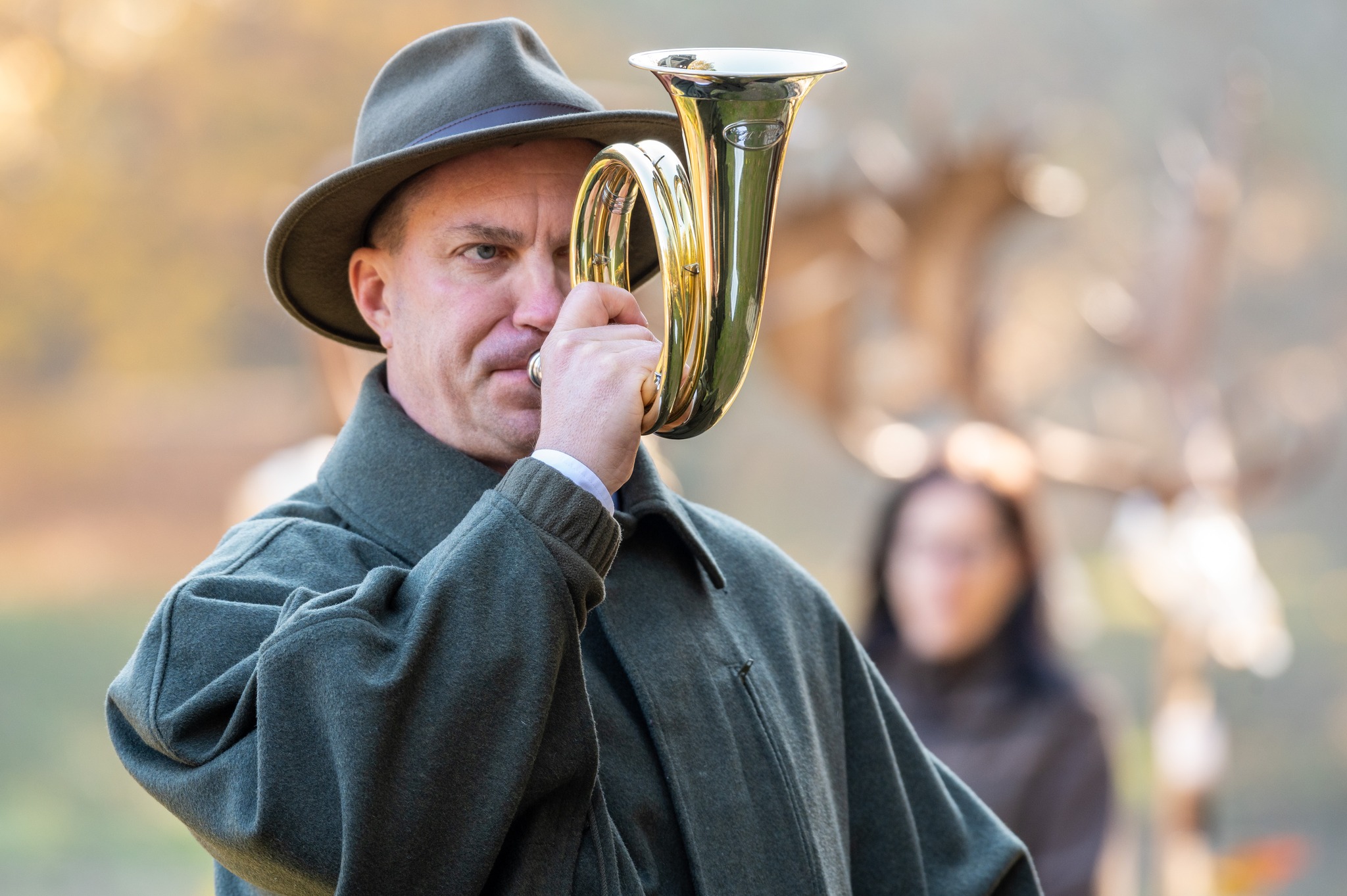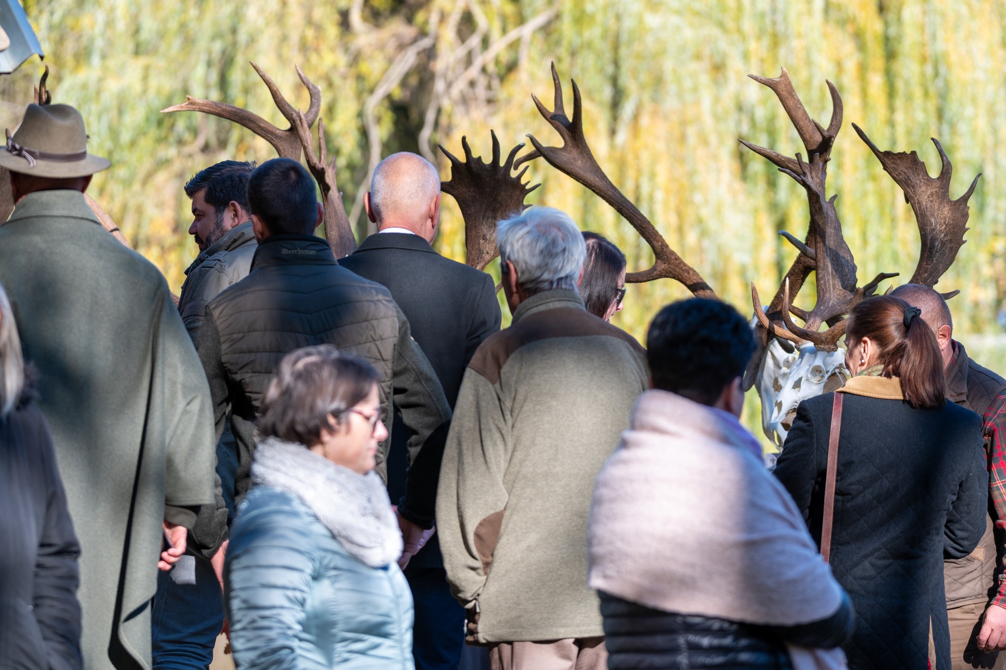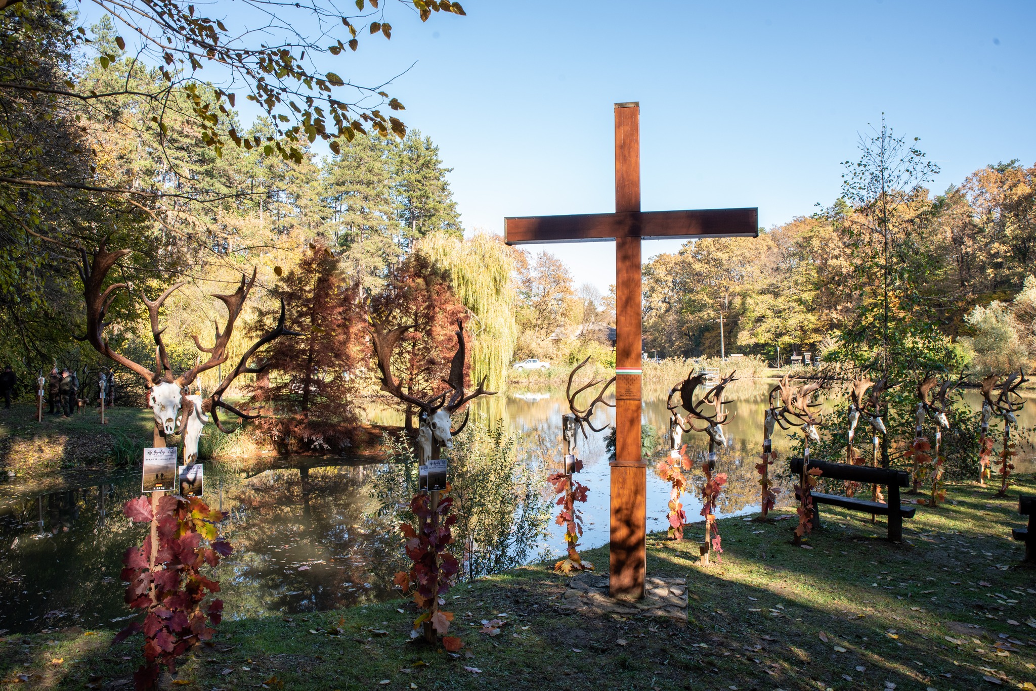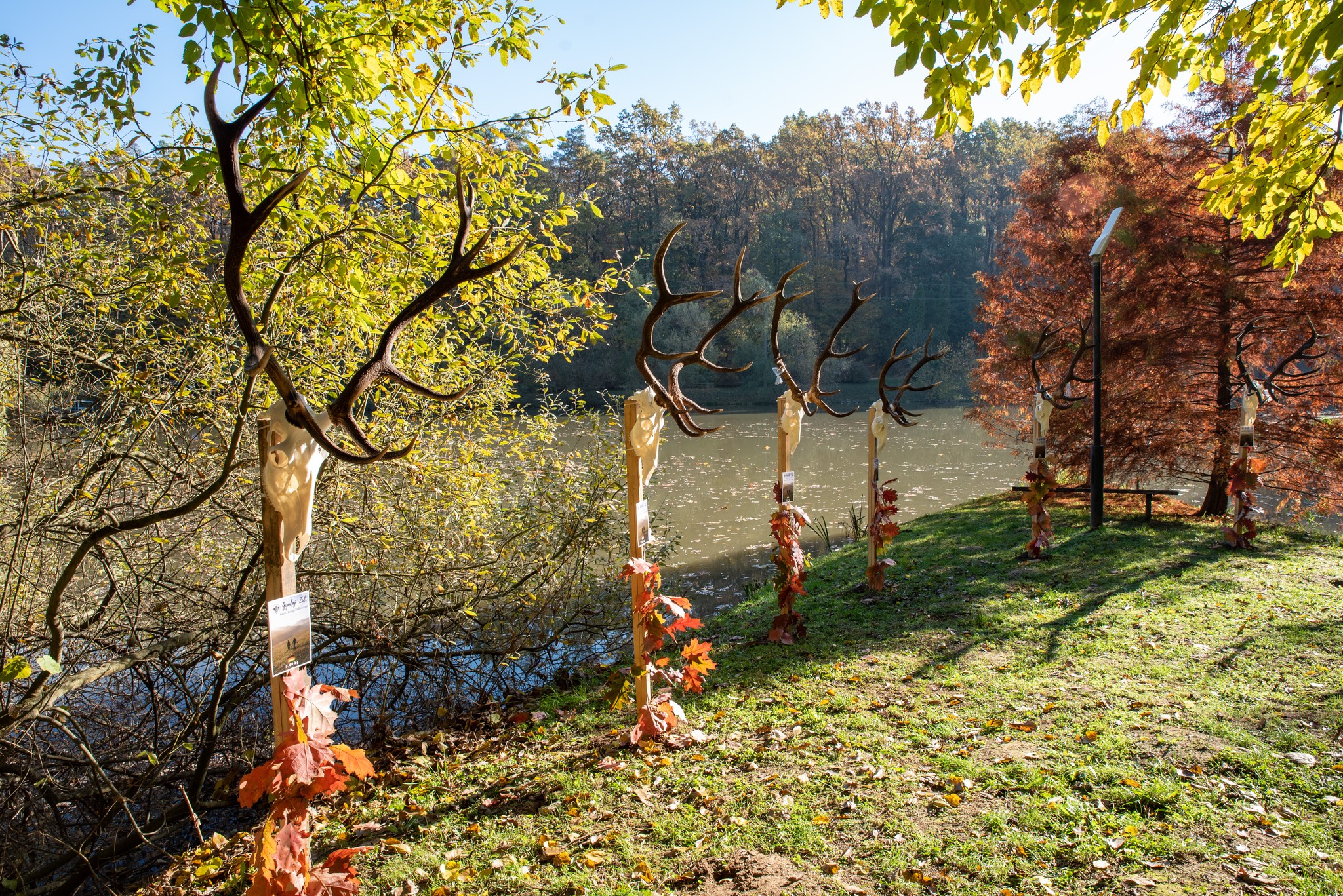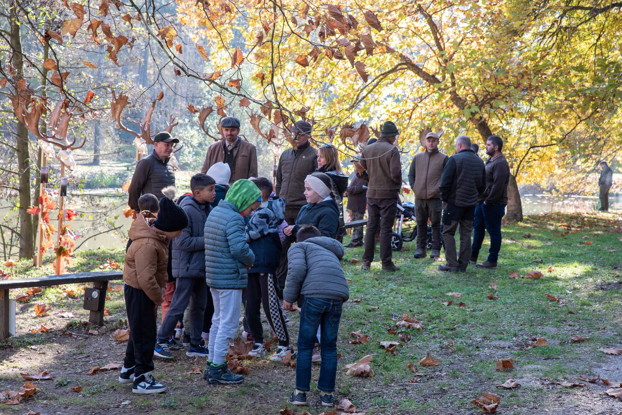 A Vadászkamara Kürtegyüttese gyönyörű szólamaival kezdődött a trófeaszemle a tó és az erdő semmivel fel nem érő kiváló akusztikájában, mindez a természet őszi pazar lombszíneződése mellett.