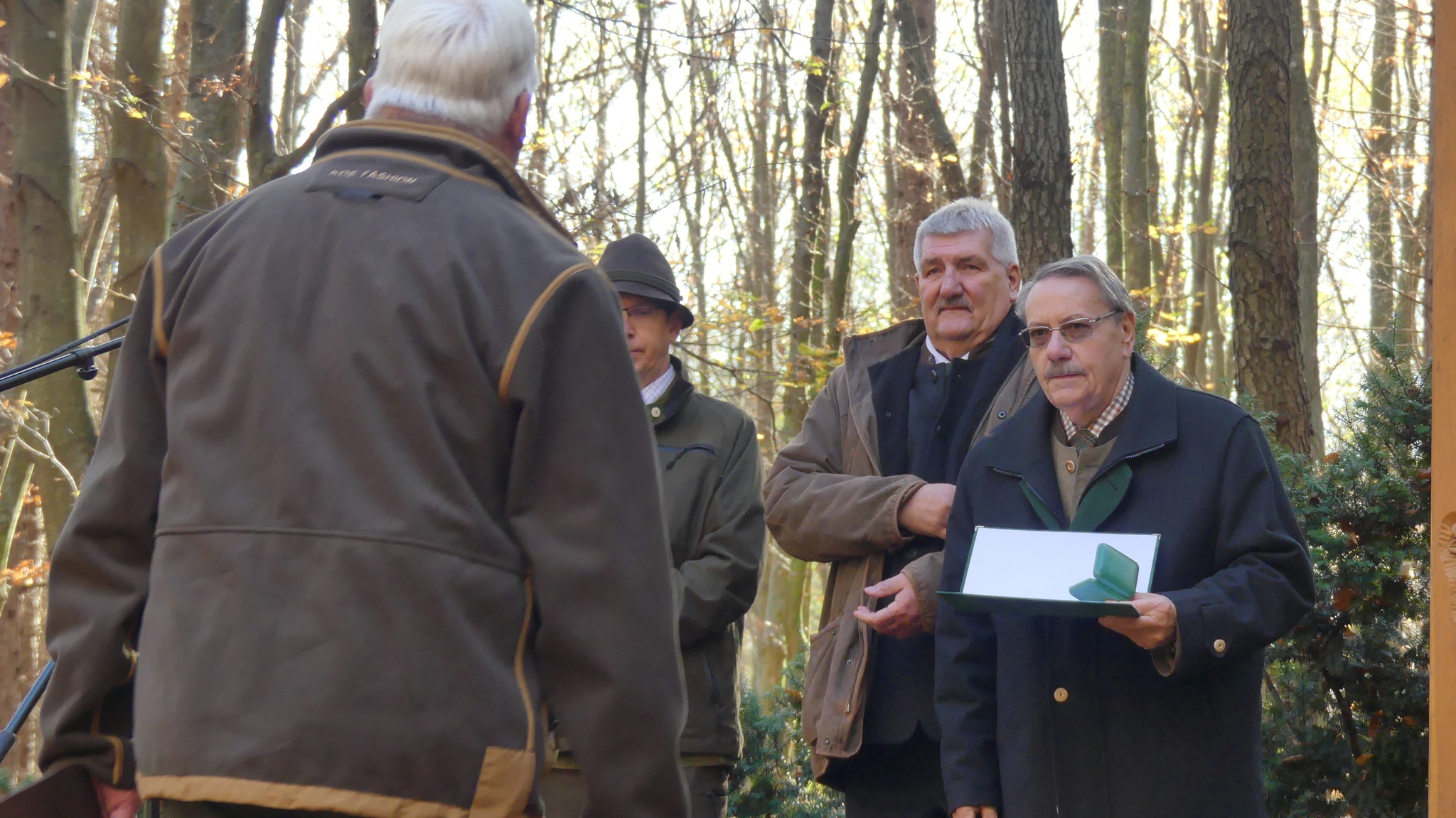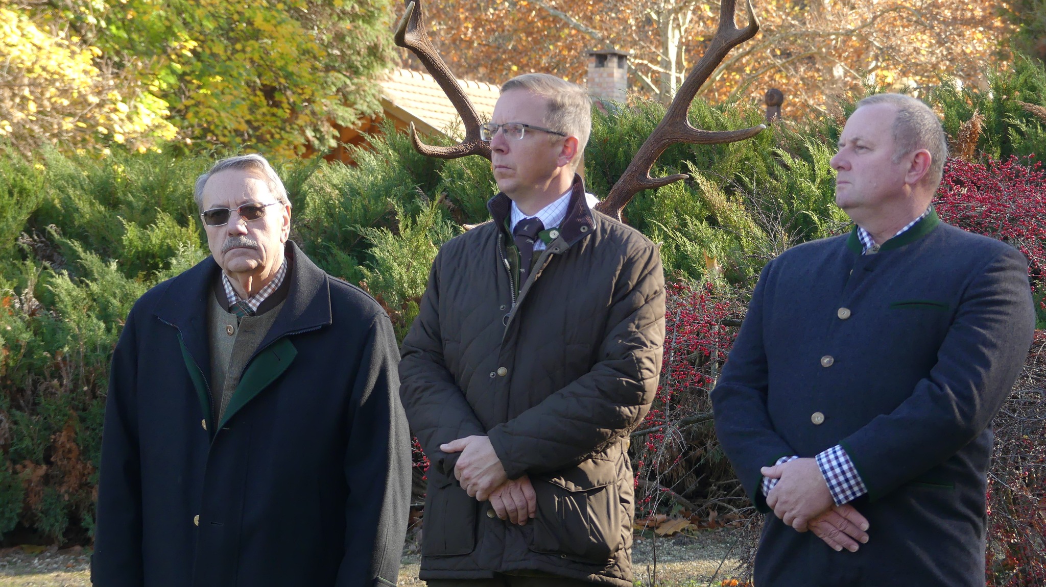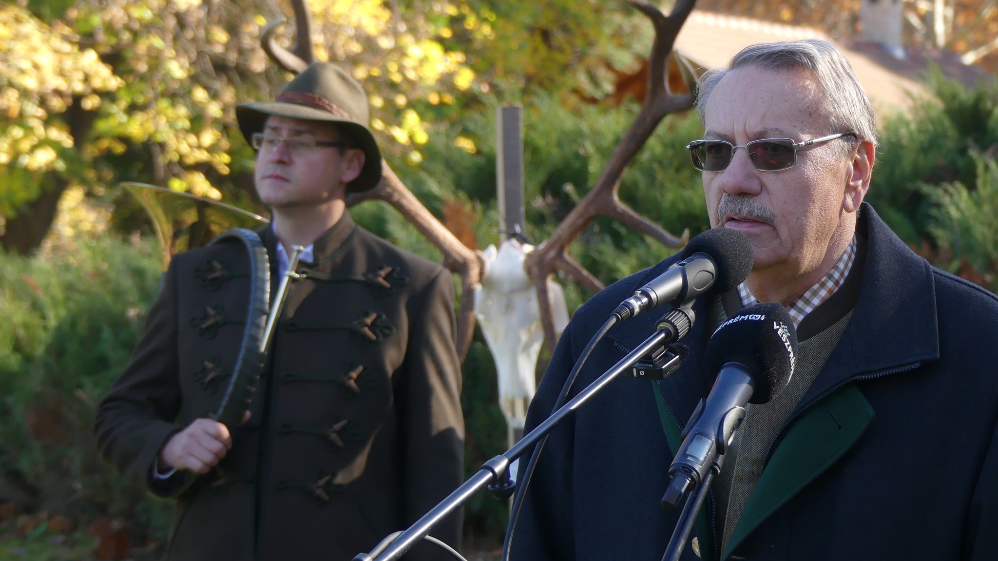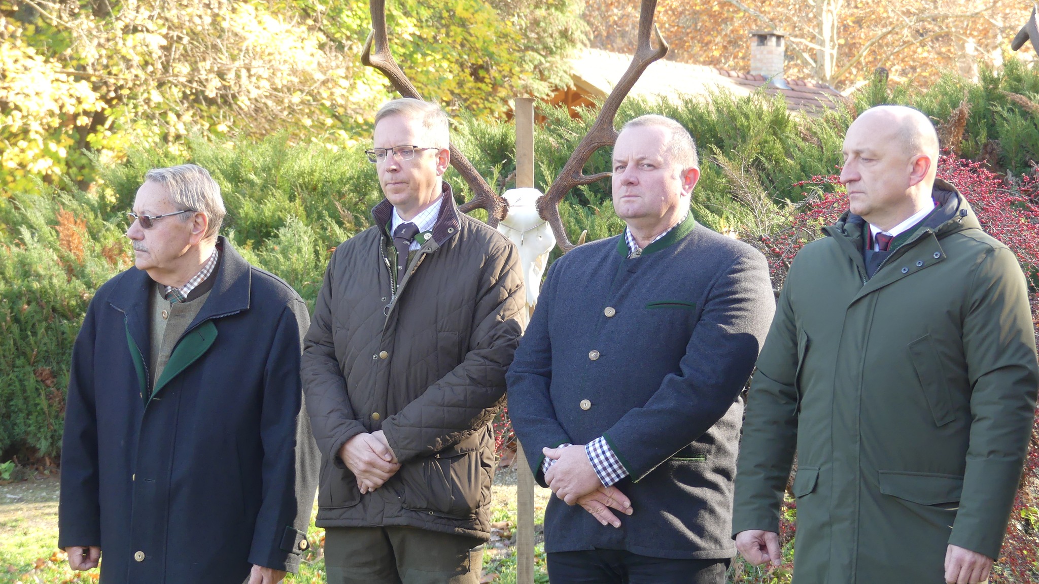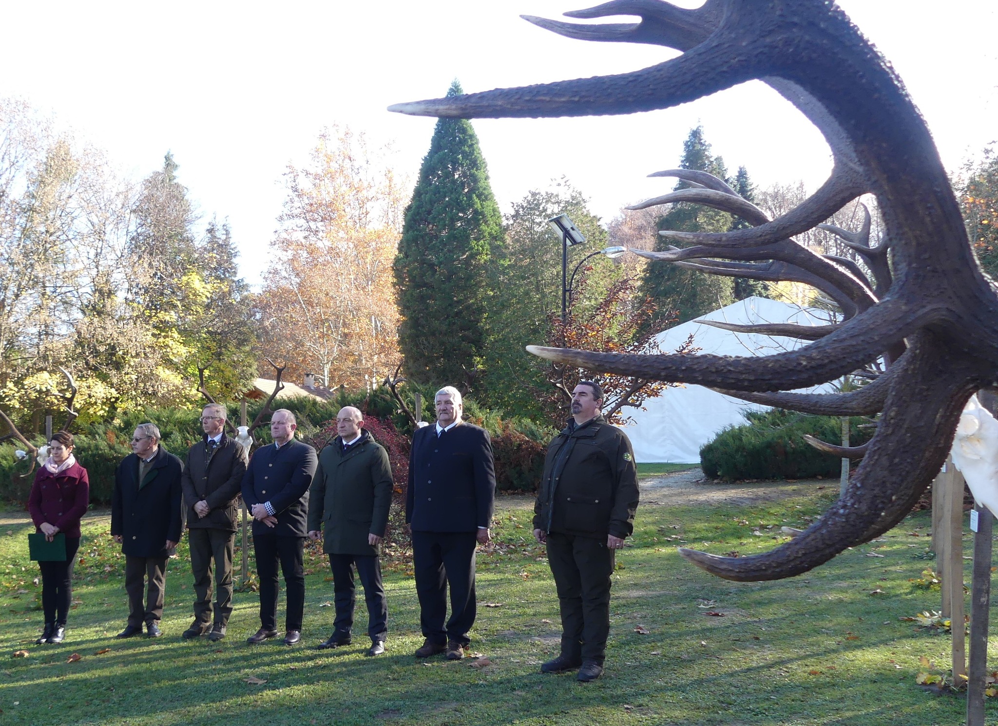 A kitüntetés átadása után koszorút helyeztek el a hivatásos vadászok emlékhelyénél a megyei vadászkamara és az állami erdőgazdaságok képviselői.