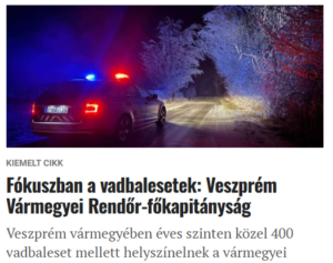 Egy ellenőrzés nyomán három bűncselekmény elkövetésének gyanúja is felmerült 2026. január 3-án, Szeghalmon. A városi rendőrkapitányság járőrei 16 óra előtt néhány perccel állítottak le egy gépkocsit, amelyben négy Jász-Nagykun-Szolnok vármegyei férfi ült. A kocsiban légpuskát, parittyát, baseballütőt, és egy zsákban egy vadnyulat és három fácánt találtak. A vadakat az egyik utas ejthette el, akinek erre nincs jogosultsága, ezért orvvadászat bűntett elkövetésének gyanúja miatt eljárás indult ellene.