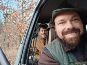 Fantasztikus zubogyi vadászatunk után Dzsonival megbeszéltük, hogy egy duplázással folytatjuk a következő kalandunkat. November utolsó napjára sikerült is egy kikérőt intézni, egy újabb gombásztanfolyamra… így hát nagyfiam is velem tarthatott minden akadály nélkül, de jött ám velünk még valaki… akinek apró testében ott lüktet az az erő, melyet bizony sok vadászkutya megirigyelhetne… Ő pedig nem más volt, mint személyesen Ödön, a mi kis mini oroszlánunk, szeretett tacskónk… Gyakorolni szerettem volna vele az utánkeresést, és erre mi is lehetett volna jobb alkalom, mint az a jól megszervezett vadászat, amiben ismét B. segített nekünk. Felvettem Dzsonit, aztán egy gyors átöltözés, Ödi a hónunk alá, és már robogtunk is a vadászház felé. A kötelező adminisztráció után már pattantunk is a kocsiba… de az idő nem sok jóval biztatott minket. Szél volt, kellemetlenül csapott sokszor arcunkba, vadak sehol. Nagy területet jártunk be, de az őzek mindenhol kelepcébe csaltak bennünket, vagy a tábla közepén, vagy olyan megközelíthetetlen helyen, akkora távolságban voltak, hogy azt még egy mesterlövésznek is becsületére vált volna véghez vinni a feladatot.